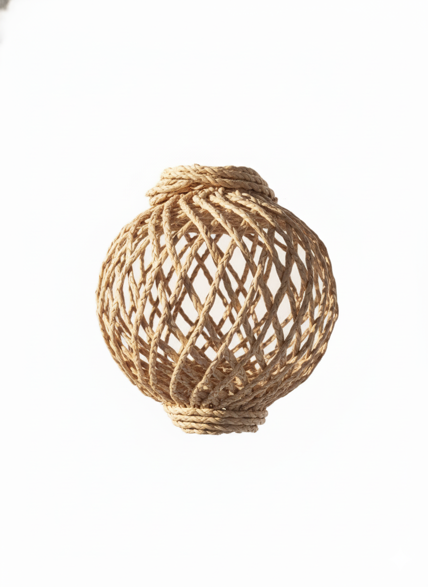 La lámpara “Sol de Mimbre” está tejida a mano con fibra natural, formando una estructura abierta que permite el paso de la luz de forma suave y envolvente. Su diseño artesanal, inspirado en la calidez del sol costero, aporta un toque orgánico y elegante a cualquier espacio. Ideal para interiores que buscan una estética natural, minimalista y acogedora.